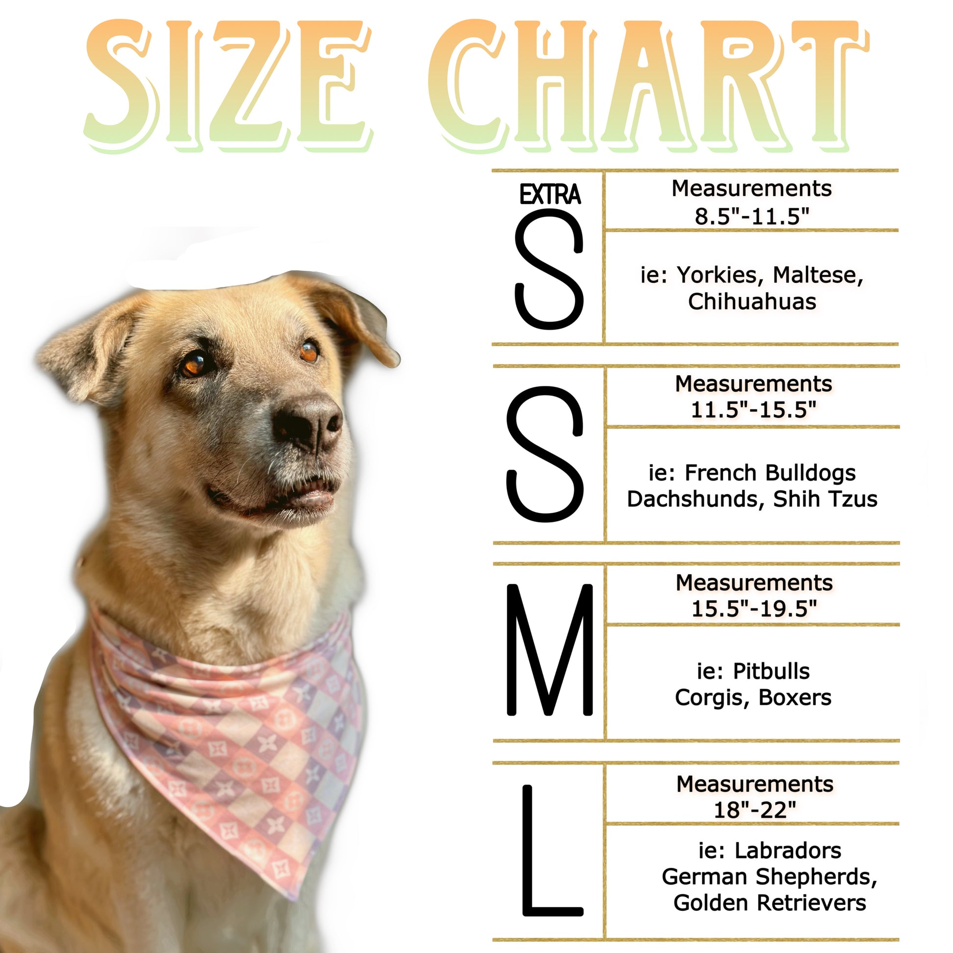 *If your pup is between sizes, it's always best to size up. Our ties allow for easy adjustments without compromising the length of the bandana.